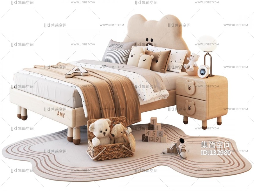 现代儿童床,儿童玩具地毯 3d模型下载 [模型ID:132980]
