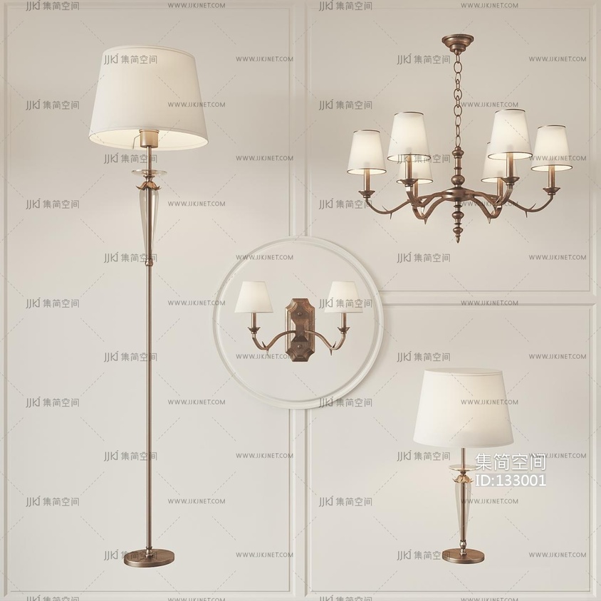 欧式铁艺轻奢吊灯壁灯落地灯组合 3d模型下载 [模型ID:133001]