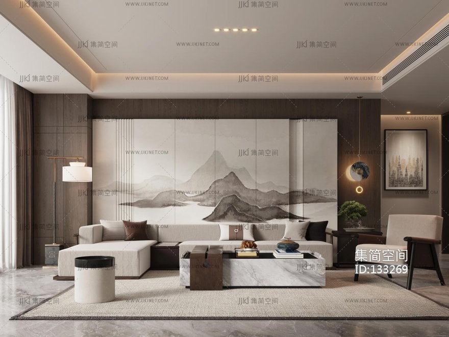 新中式客厅 3d模型下载 [模型ID:133269]