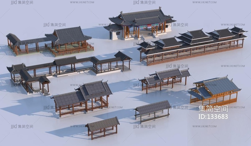 中式古建长廊,连廊3D模型 3d模型下载 [模型ID:133683]
