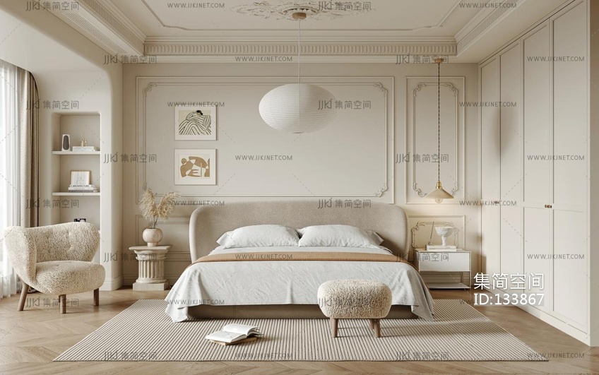 轻法式卧室 3d模型下载 [模型ID:133867]