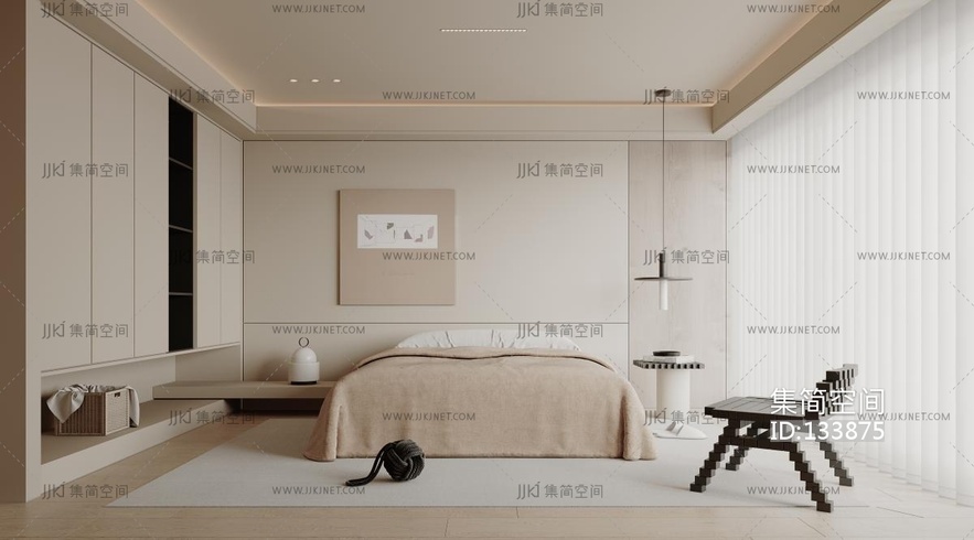奶油风卧室 3d模型下载 [模型ID:133875]