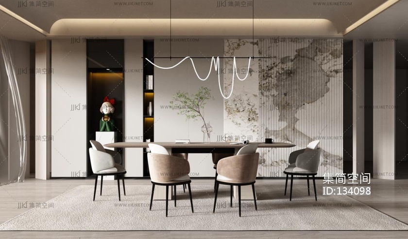 04-现代餐厅餐桌椅,长条吊灯 3d模型下载 [模型ID:134098]