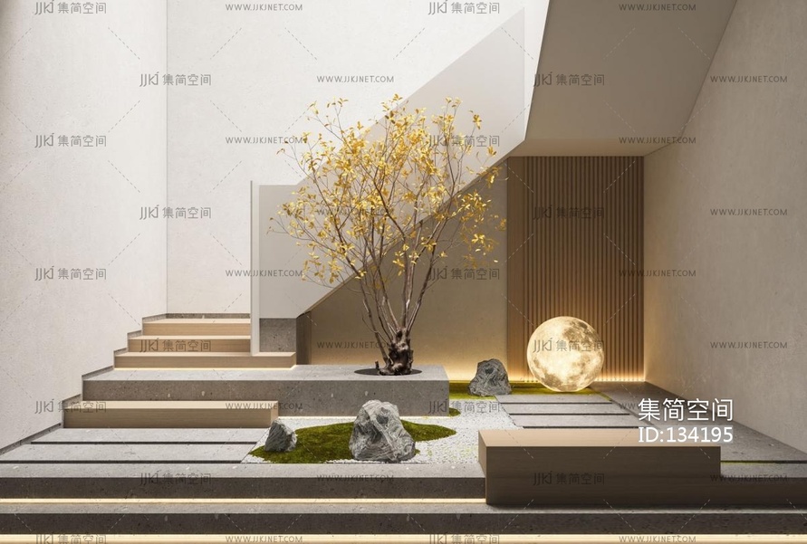 新中式楼梯间造景3d模型 3d模型下载 [模型ID:134195]