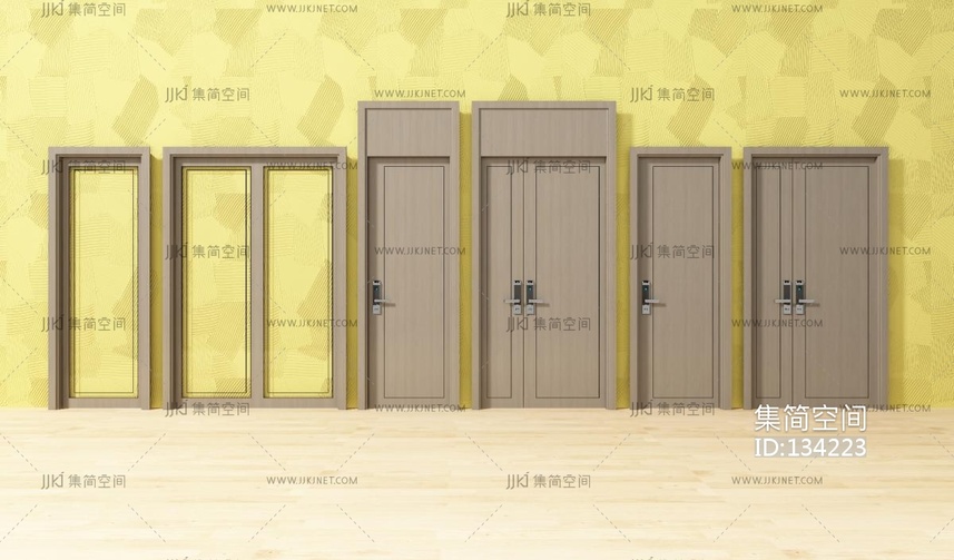 现代单开门磨砂玻璃门3D模型3d模型下载