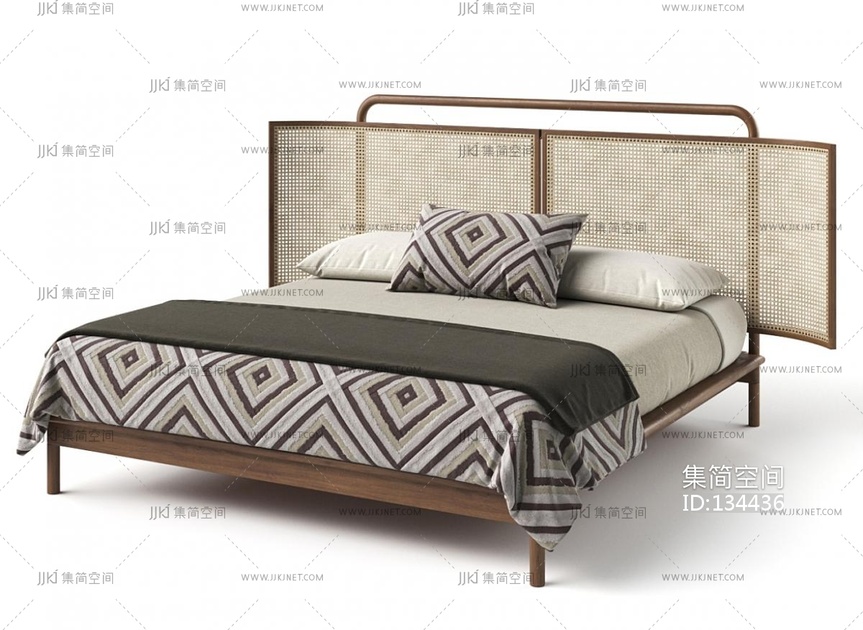 新中式双人床,3D模型 3d模型下载 [模型ID:134436]