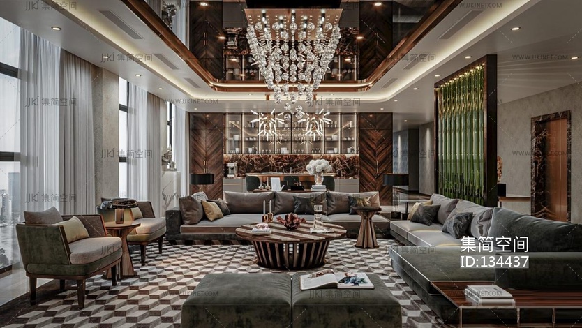 轻奢客厅 餐厅3d模型 3d模型下载 [模型ID:134437]