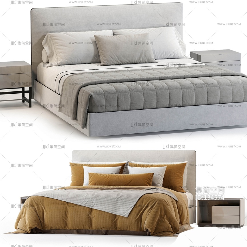 Molteni Ribbon 现代双人床,床头柜 3d模型下载 [模型ID:134574]