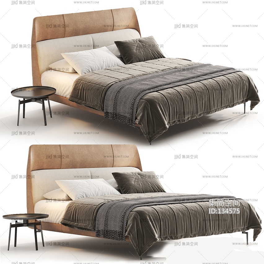 现代双人床3D模型 3d模型下载 [模型ID:134575]