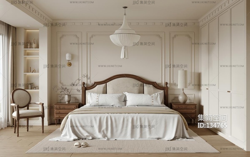 6法式中古家居卧室_主卧_飘窗卧室_高级灰卧室3D模型cr3d模型下载