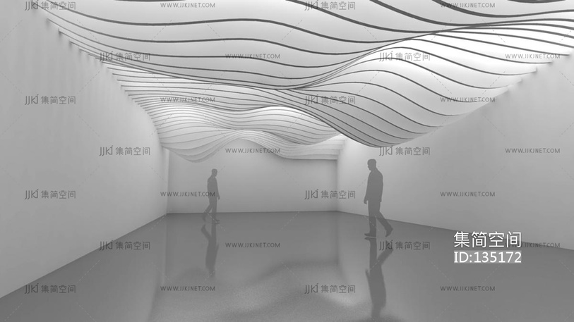 现代波浪水纹格栅造型吊顶展厅 3d模型下载 [模型ID:135172]