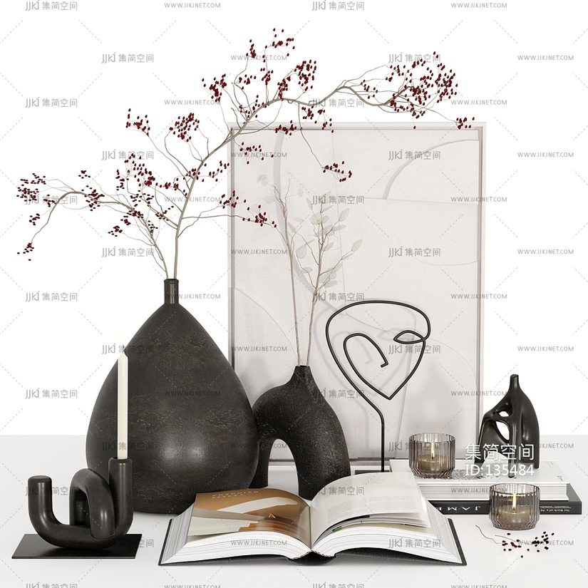 现代陈设饰品花瓶书籍摆件 3d模型下载 [模型ID:135484]