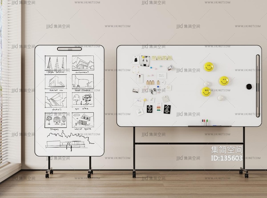 办公白板 便利贴 移动白板,便条 3d模型下载 [模型ID:135603]