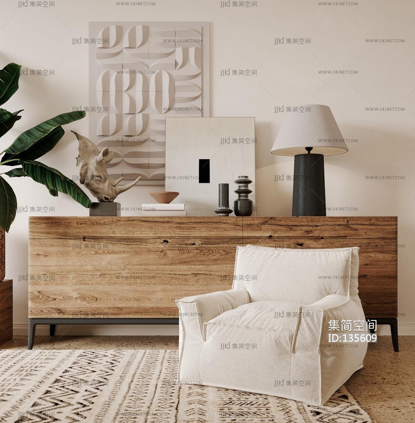 侘寂风玄关柜 ,单人沙发组合 3d模型下载 [模型ID:135609]