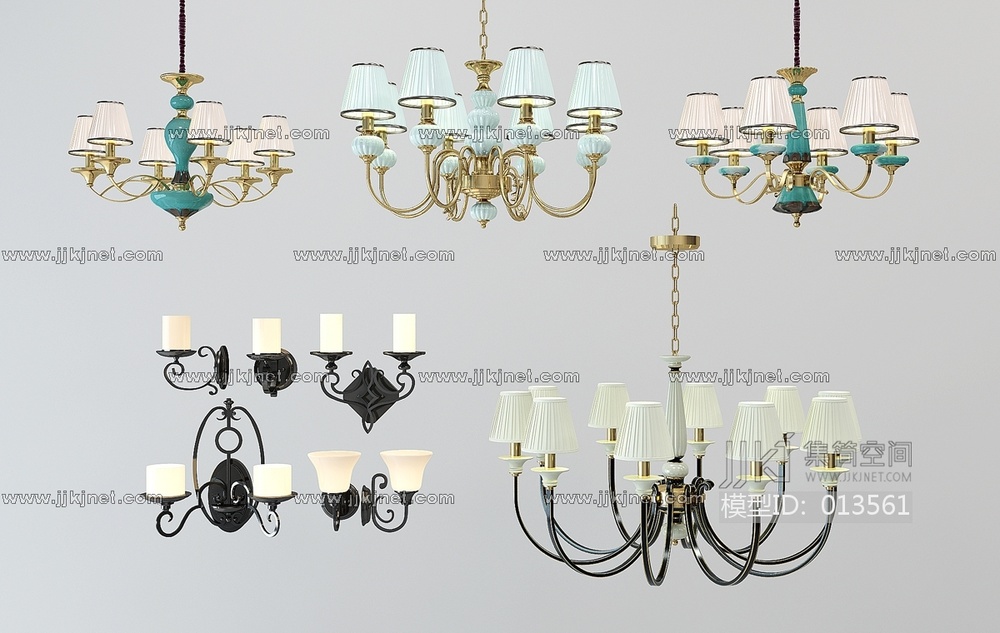 H02-1208美式轻奢多头吊灯单壁灯欧式吊灯 3d模型下载 [模型ID:13561]
