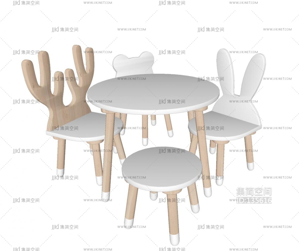 现代儿童桌椅组合su模型 su草图模型下载 [模型ID:135616]