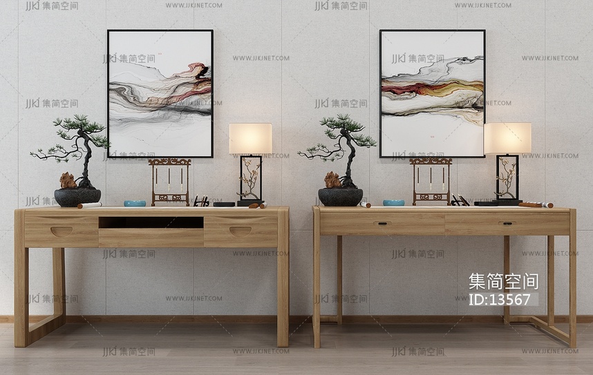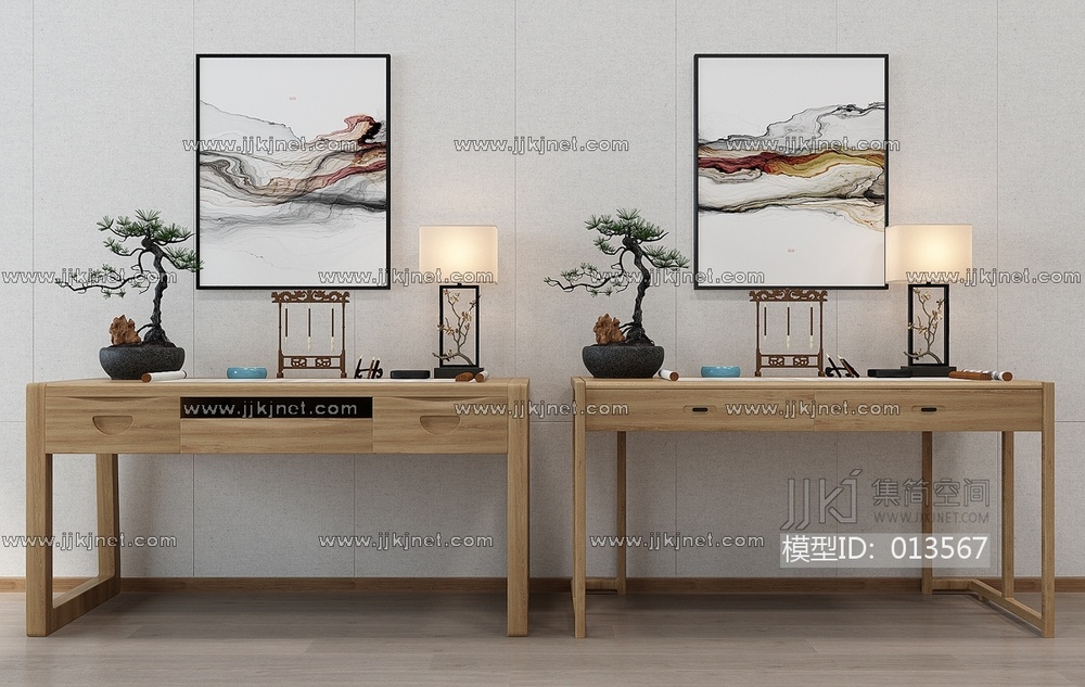 H11-1208新中式书桌写字台 3d模型下载 [模型ID:13567]