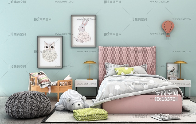 H14-1208北欧儿童房儿童床玩具懒人沙发组合 3d模型下载 [模型ID:13570]