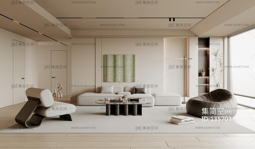 奶油风客厅 3d模型下载 [模型ID:135703]