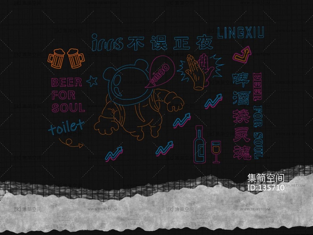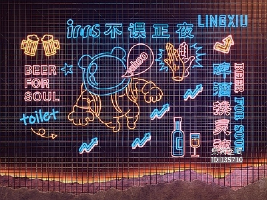 现代酒吧霓虹灯,装饰灯SU模型 su草图模型下载 [模型ID:135710]