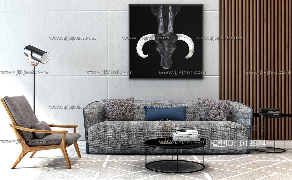 H27-1208现代休闲椅沙发组合 3d模型下载 [模型ID:13574]