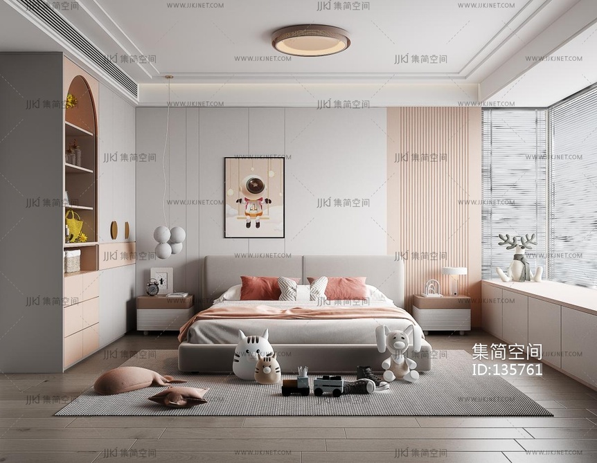 07-现代儿童房,儿童床学习桌-3d模型下载