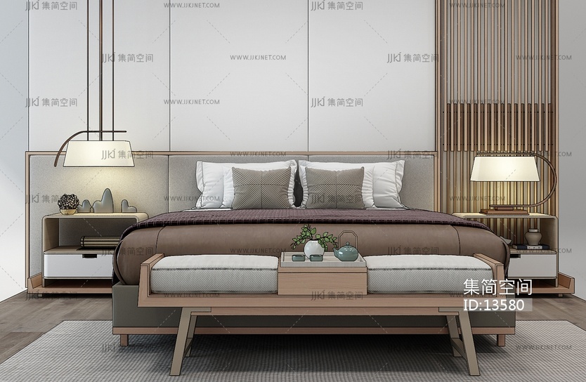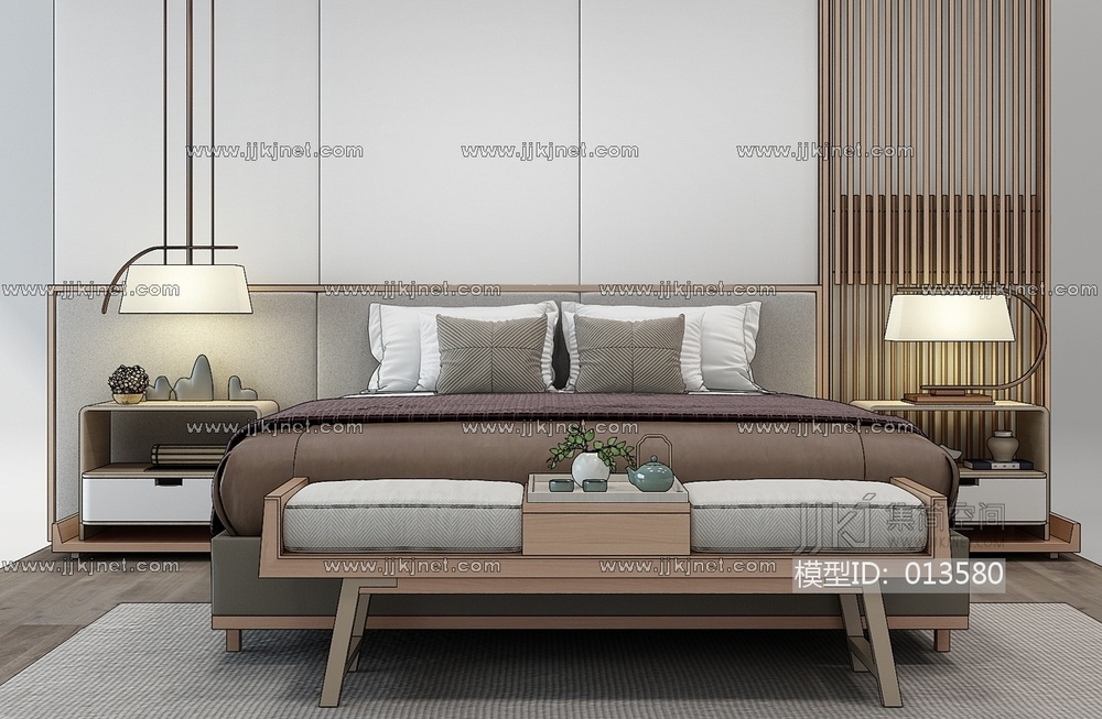 H33-1208新中式床床头柜 3d模型下载 [模型ID:13580]