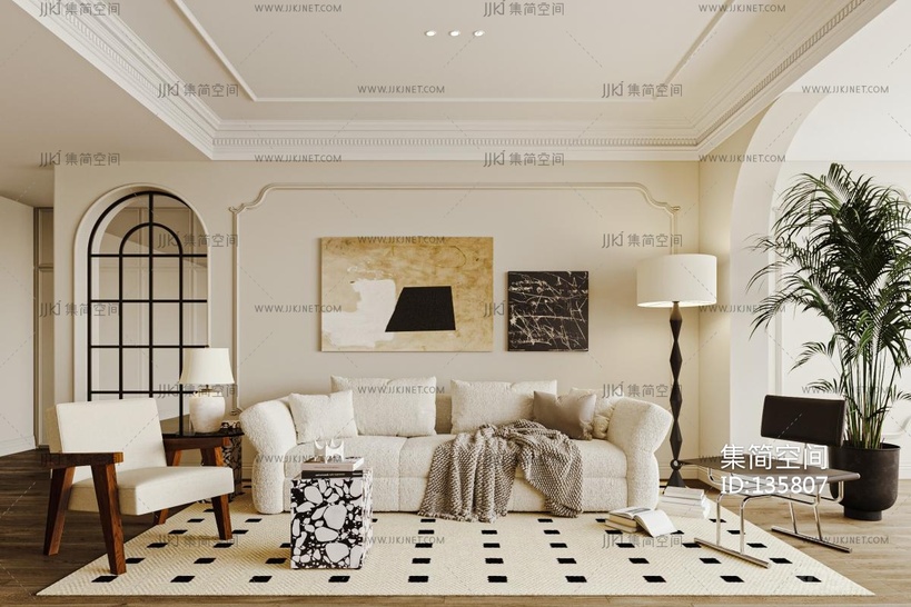 法式奶油风客厅 3d模型下载 [模型ID:135807]