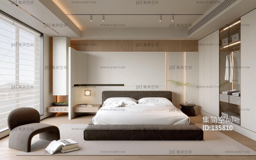 卧室,轻奢,暗黑风,现代轻奢卧室双人床,懒人沙发法式卧室3d模型下载