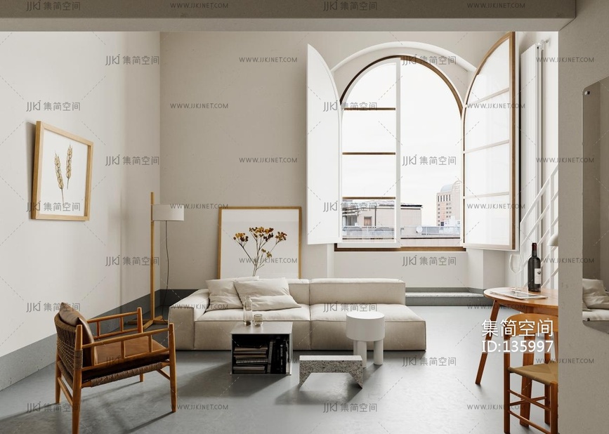 现代诧寂风客厅 3d模型下载 [模型ID:135997]
