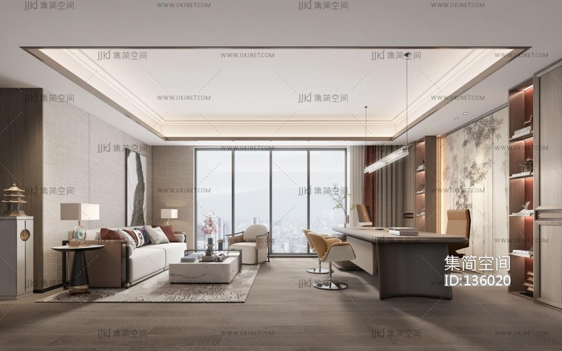 新中式总经理室3d模型 3d模型下载 [模型ID:136020]