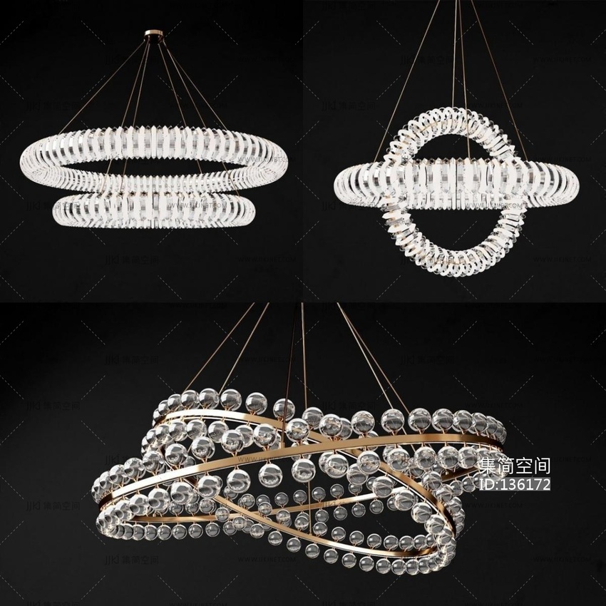 现代环形水晶吊灯组合3d模型 3d模型下载 [模型ID:136172]