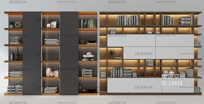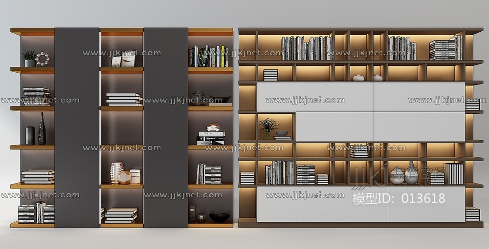 H26-1210现代书柜组合 3d模型下载 [模型ID:13618]