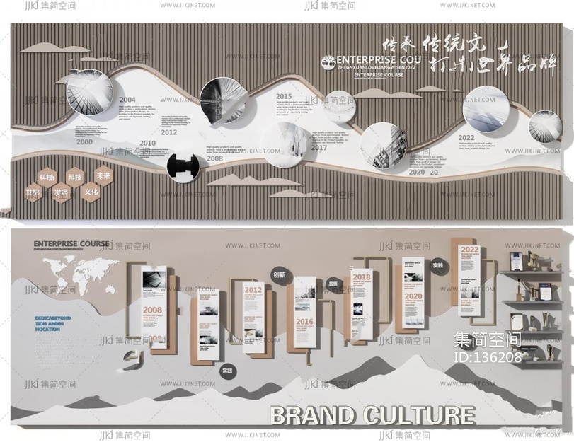 现代文化墙,宣传栏,展示墙3D模型 3d模型下载 [模型ID:136208]