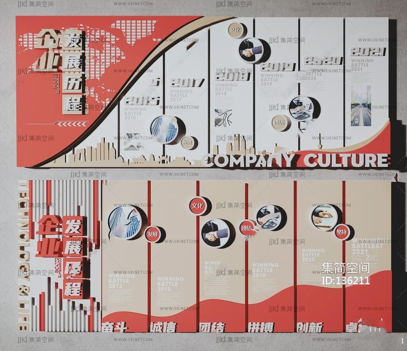 现代企业文化墙展墙 3d模型下载 [模型ID:136211]