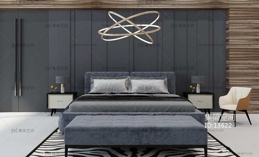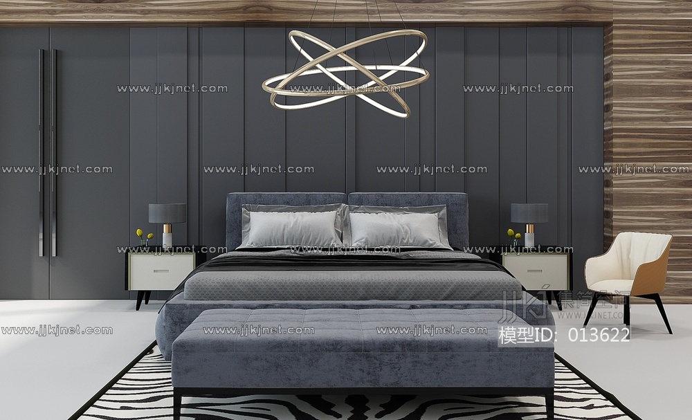 H30-1209现代卧室现代床床头柜 3d模型下载 [模型ID:13622]