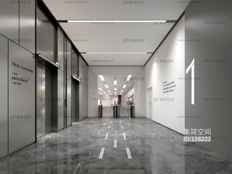 现代电梯间3D模型 3d模型下载 [模型ID:136222]