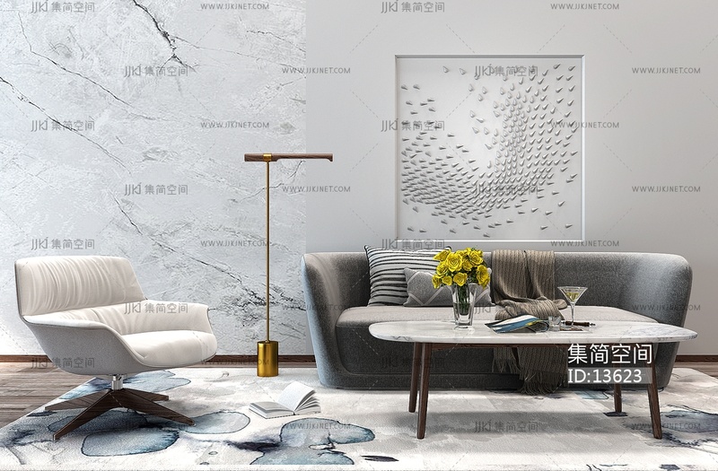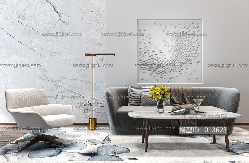 H31-1210现代双沙发茶几组合 3d模型下载 [模型ID:13623]