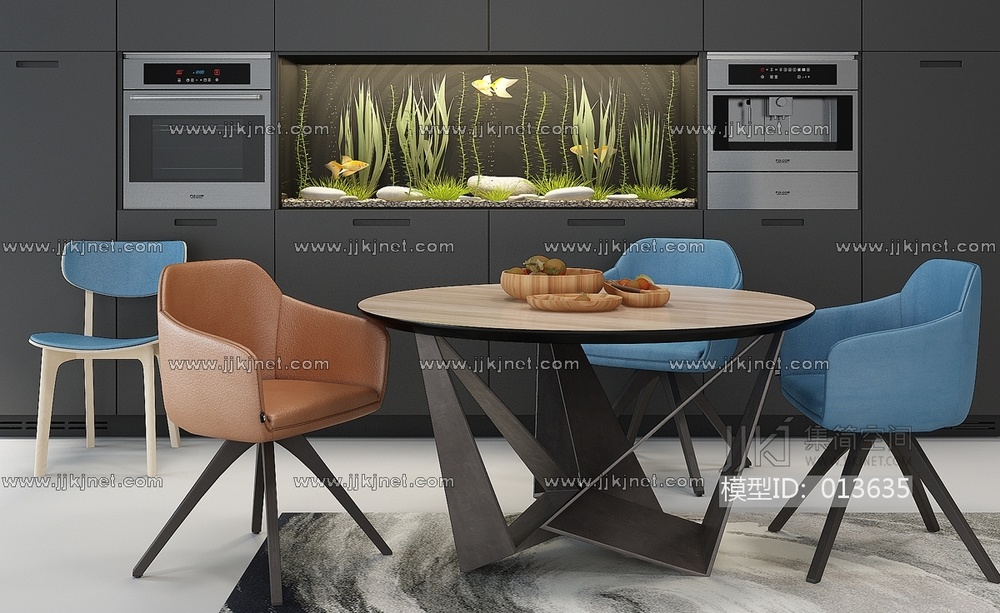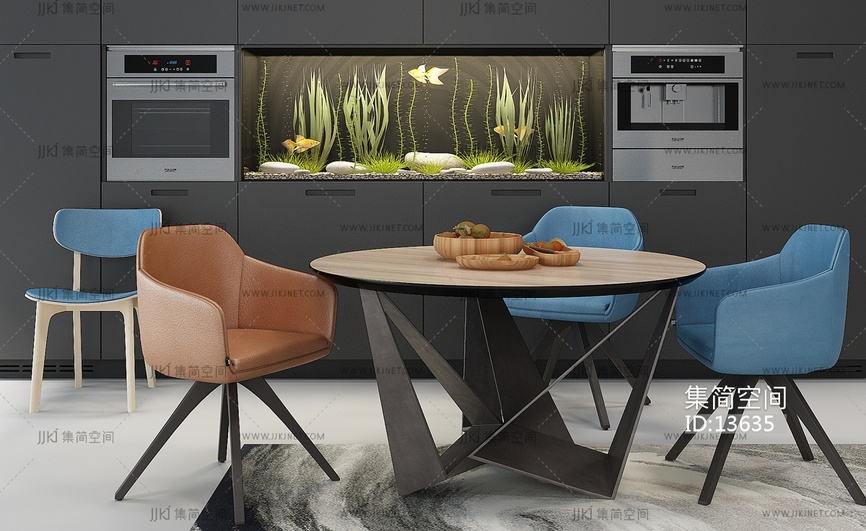 H45-1210北欧圆桌椅鱼缸组合 3d模型下载 [模型ID:13635]