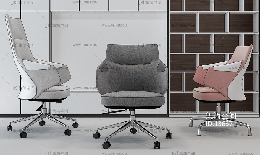 H47-1210现代办公椅组合 3d模型下载 [模型ID:13637]