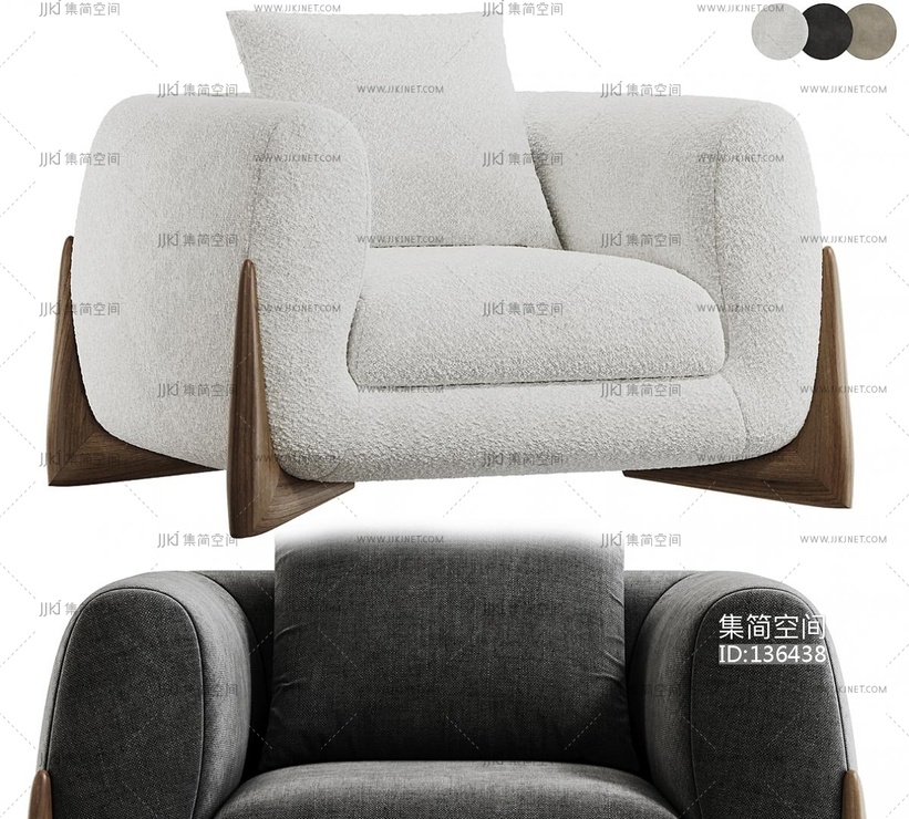 现代单人沙发休闲沙发3D模型 3d模型下载 [模型ID:136438]