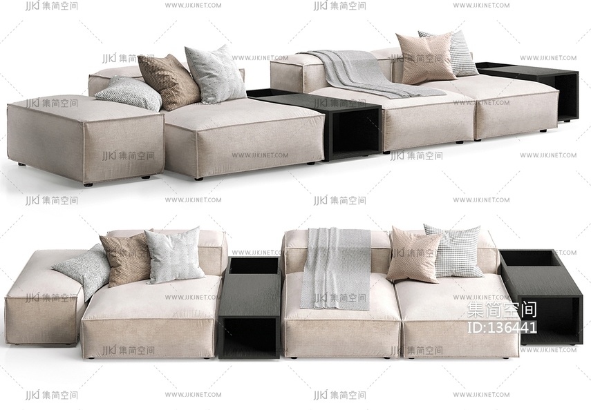 现代多人拼接沙发3D模型 3d模型下载 [模型ID:136441]