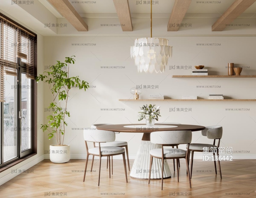 现代原木风餐厅3D模型 3d模型下载 [模型ID:136442]