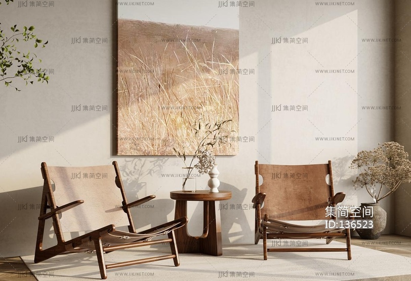 侘寂休闲椅_角几3D模型 3d模型下载 [模型ID:136523]