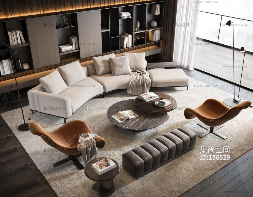 现代沙发茶几组合3D模型 3d模型下载 [模型ID:136529]