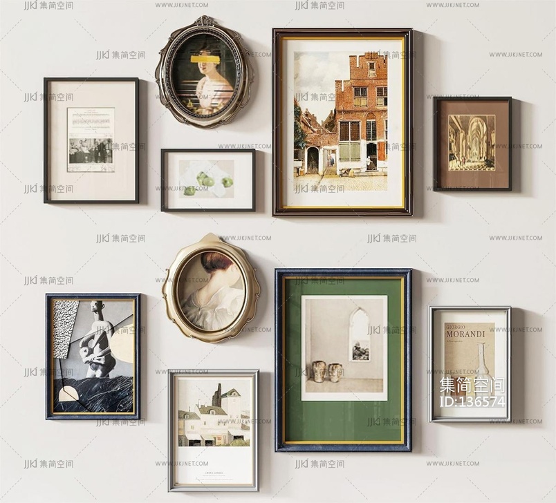 法式中古挂画_装饰画_组合3D模型3d模型下载