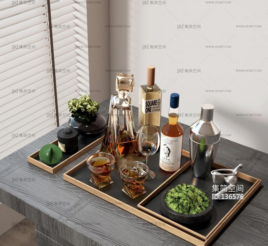 洋酒组合_托盘_酒瓶3d模型下载