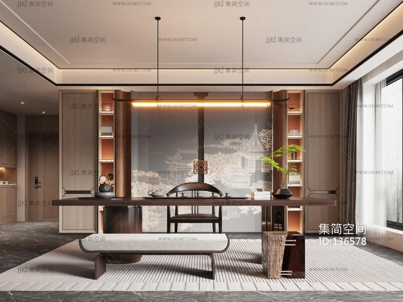 新中式茶室3D模型 3d模型下载 [模型ID:136578]