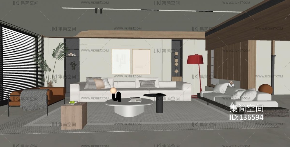 现代家居客厅su模型 su草图模型下载 [模型ID:136594]
