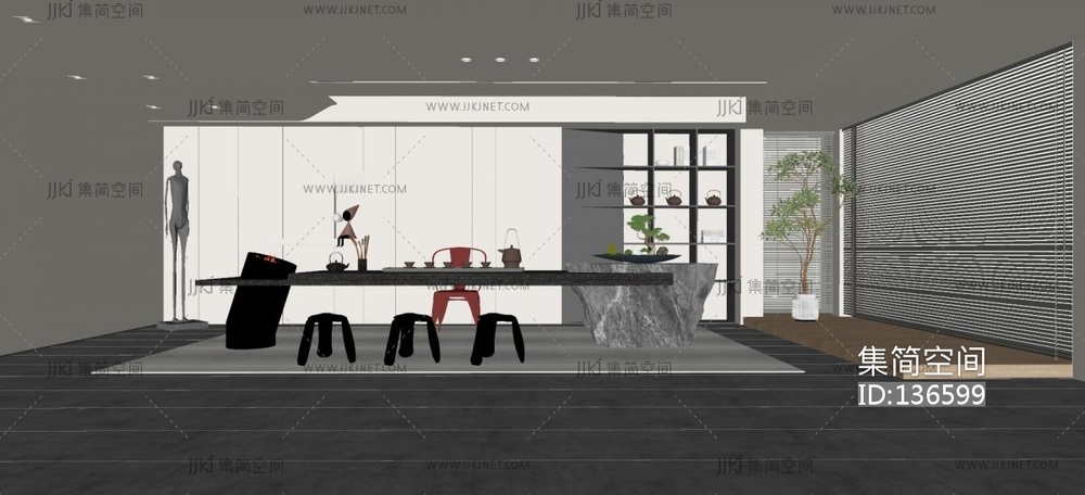 新中式茶室su模型 su草图模型下载 [模型ID:136599]